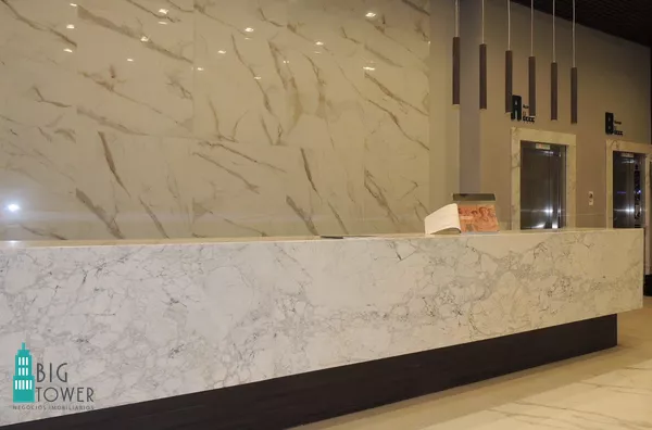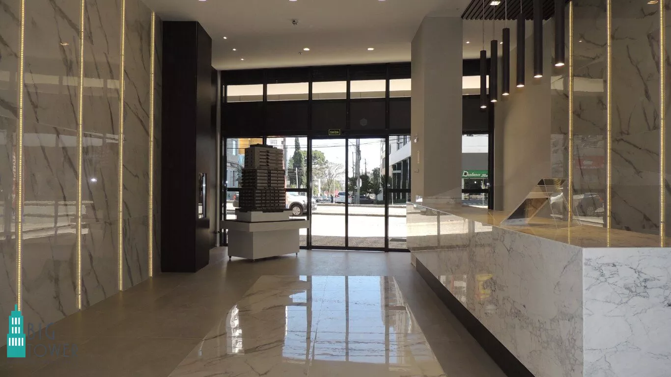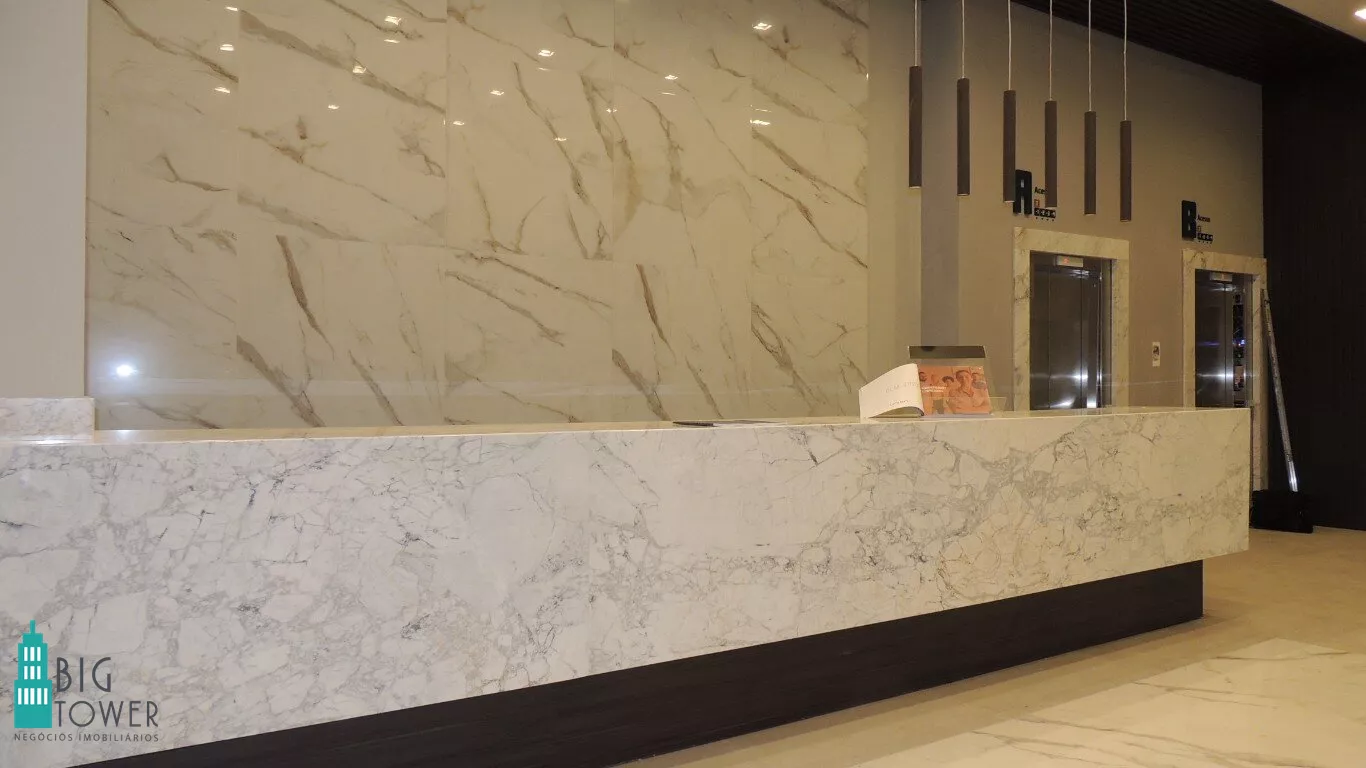 *LOBBY DE ENTRADA E RECEPÇÃO: O lobby moderno e imponente com pé direito duplo.