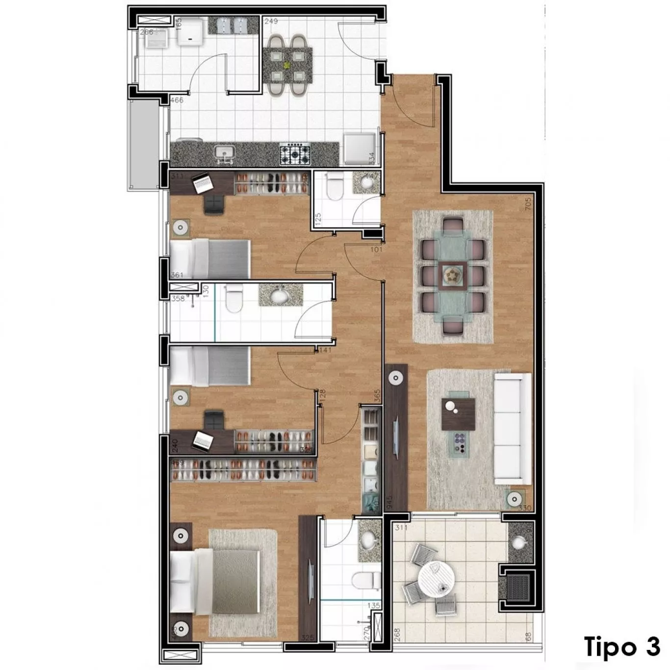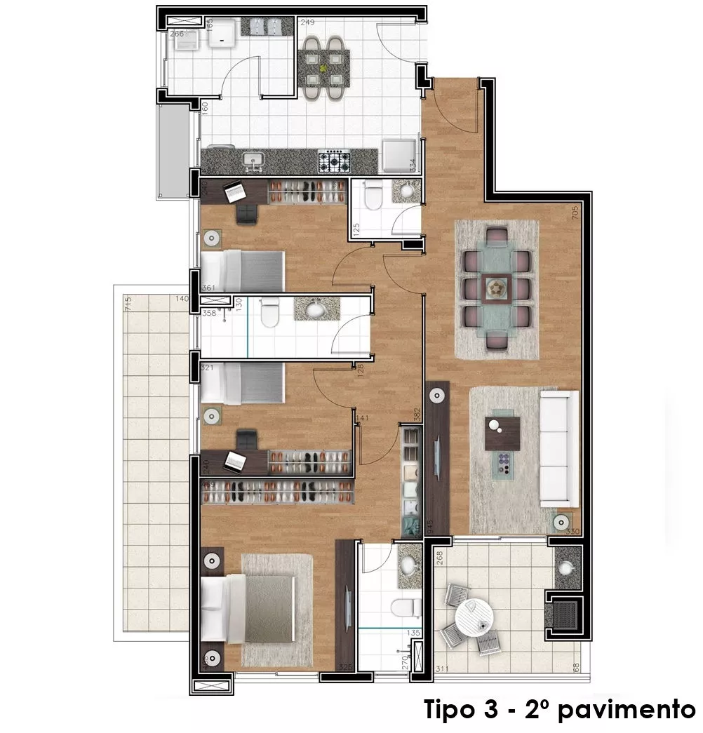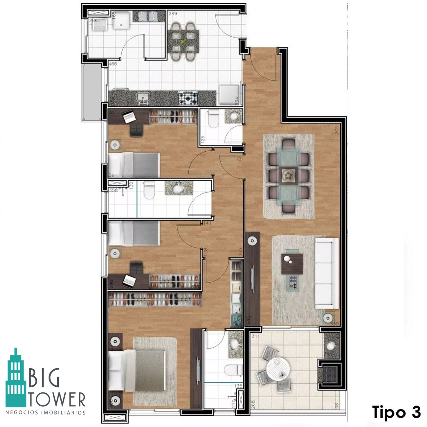 | Dormitórios: | (3) dormitório(s) sendo (1) suíte(s) | |