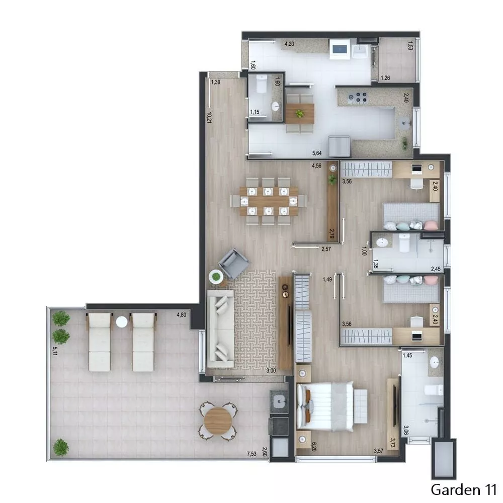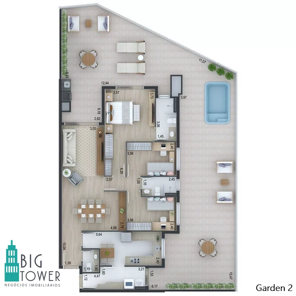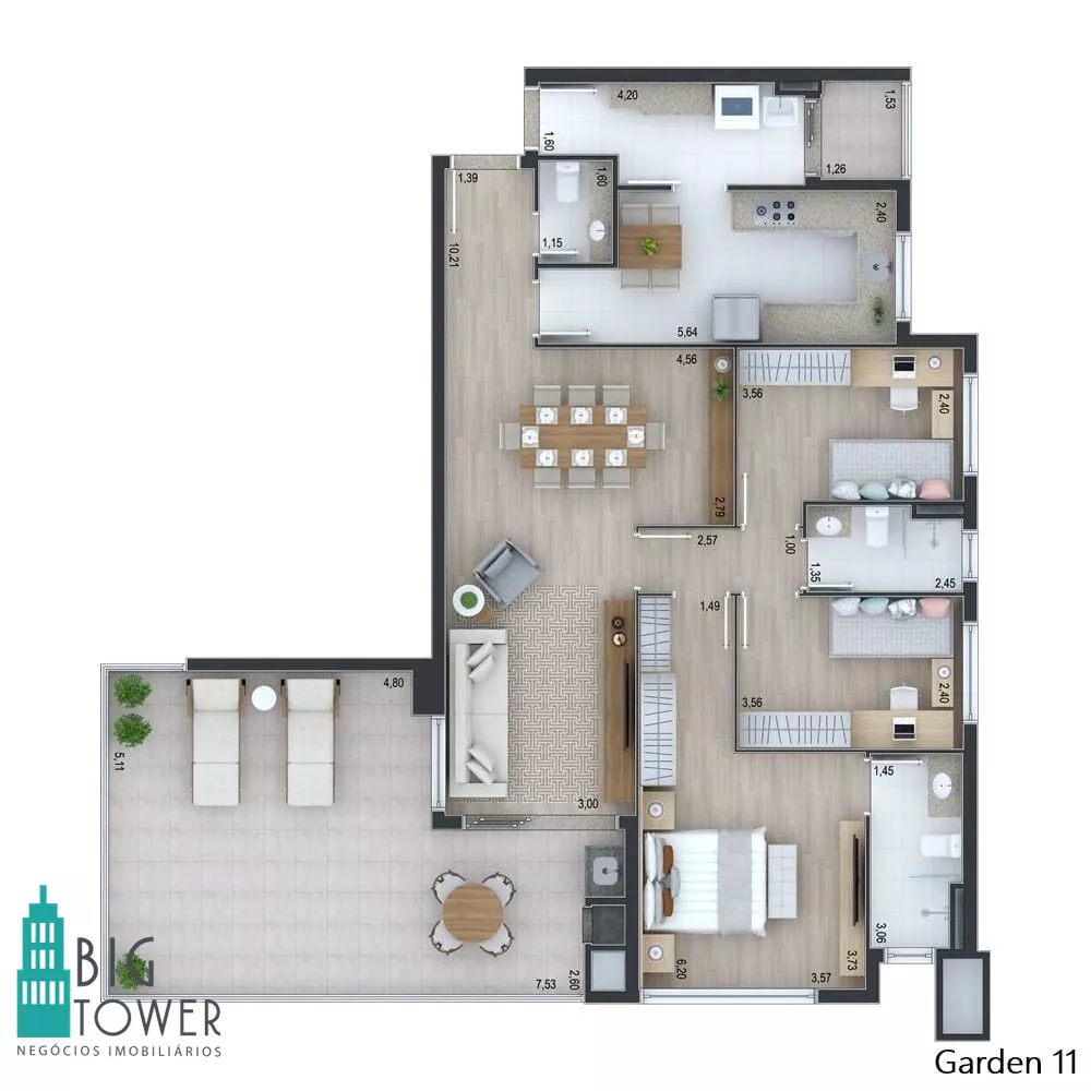 - 153m2 privativos 3 suítes Área externa com 55m