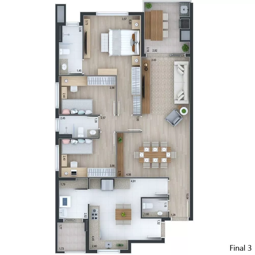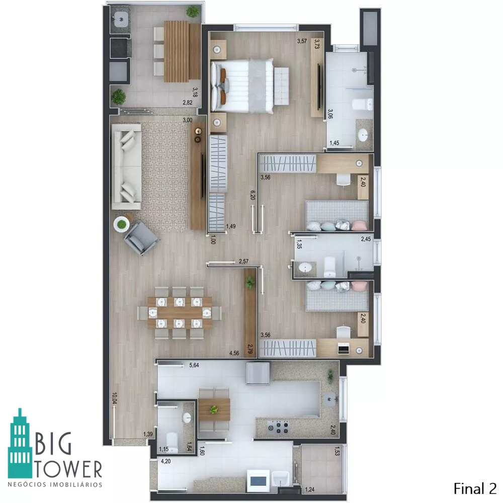 - 119m2 privativos 3 dormitórios (suíte)