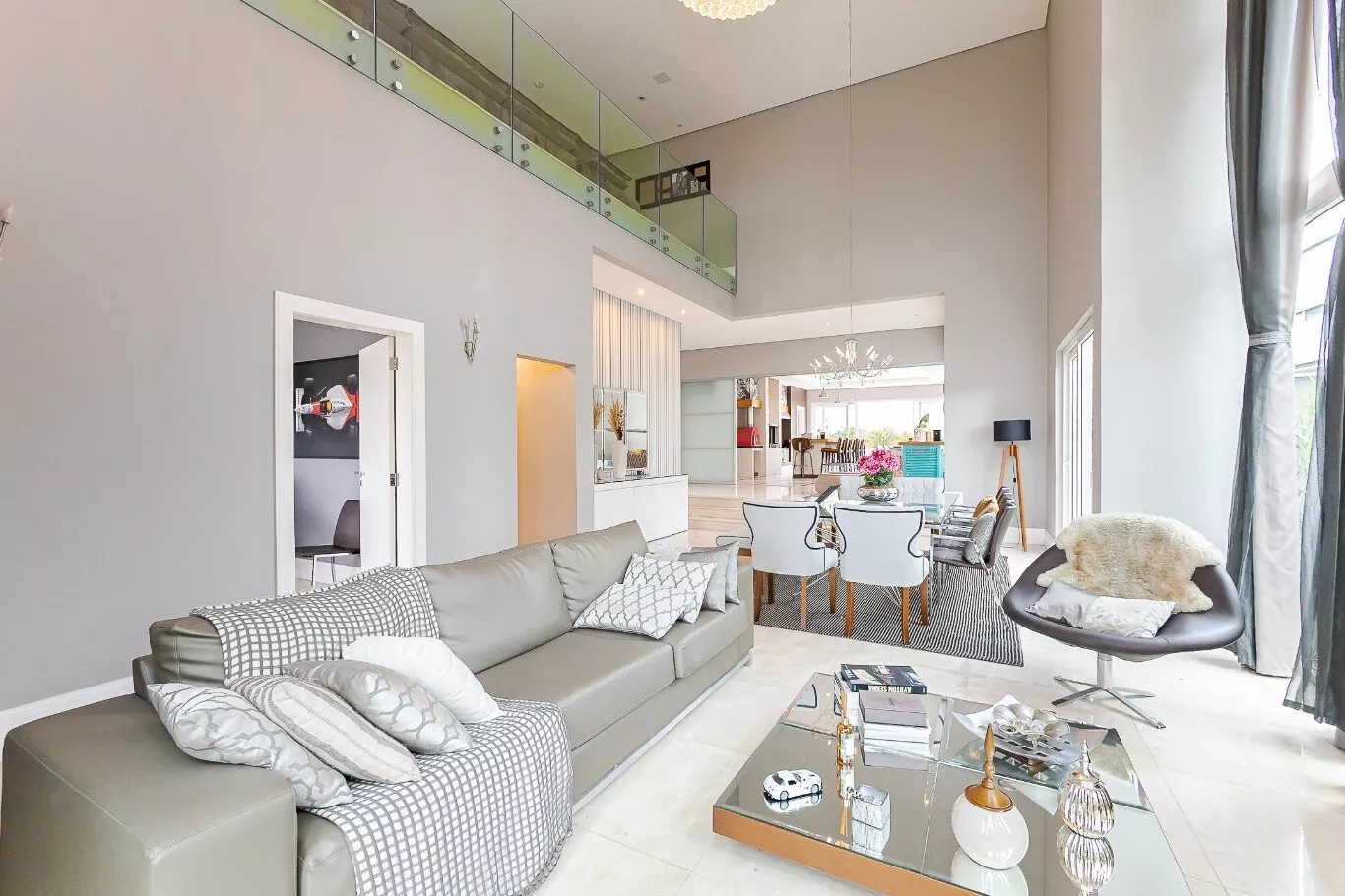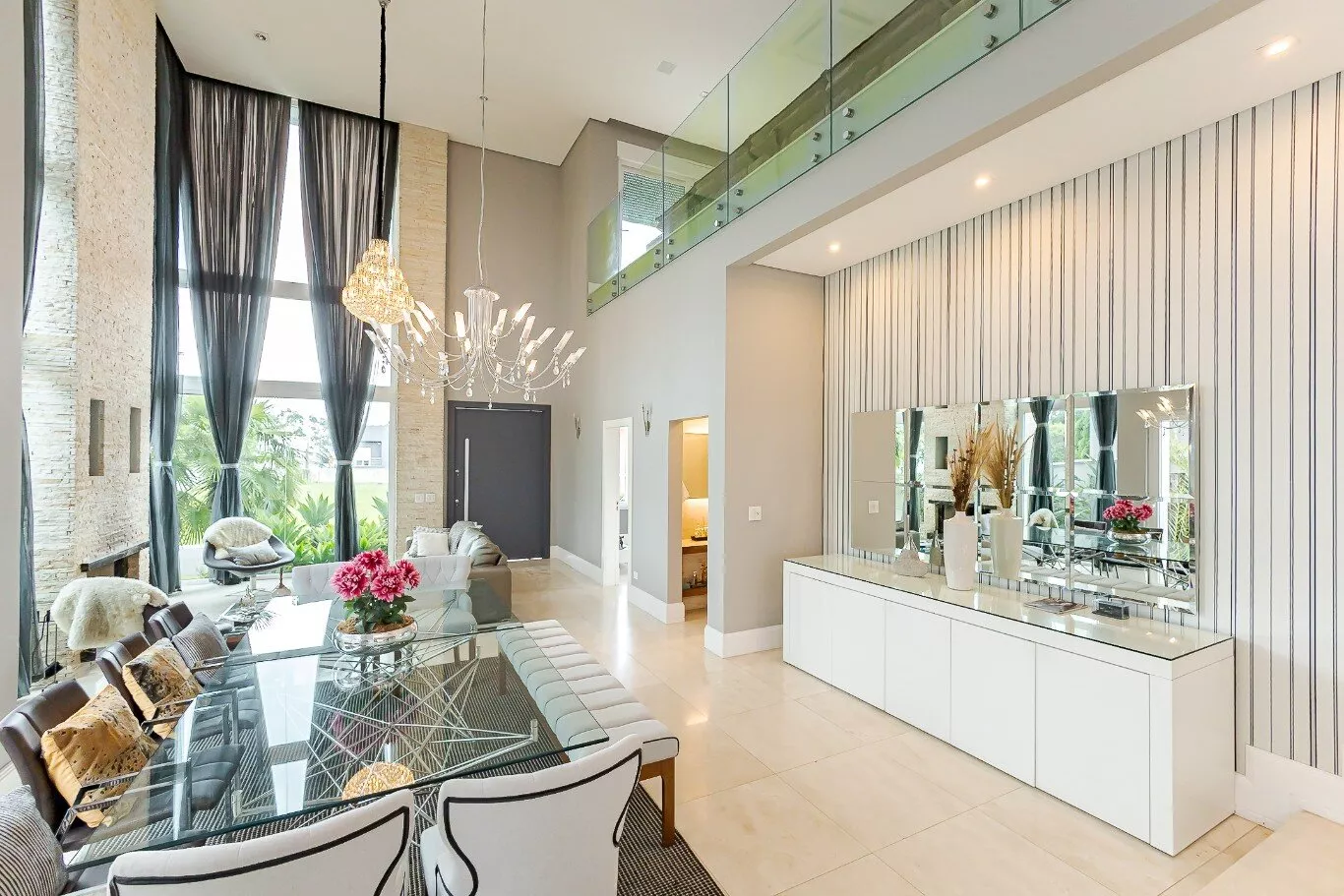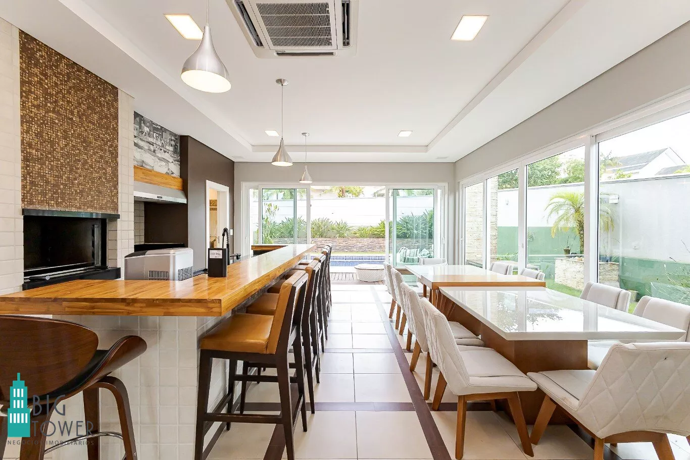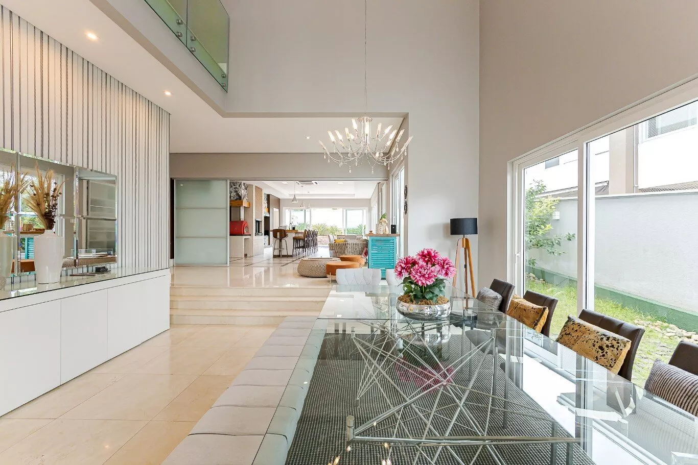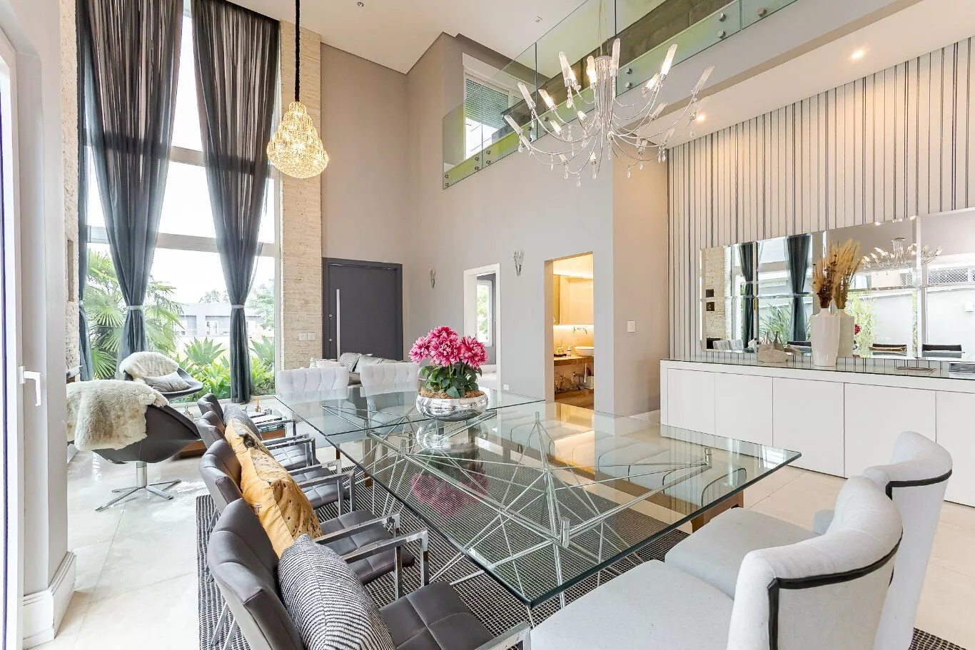 - Sala de estar e jantar com pé direito alto de 7 metros e lareira