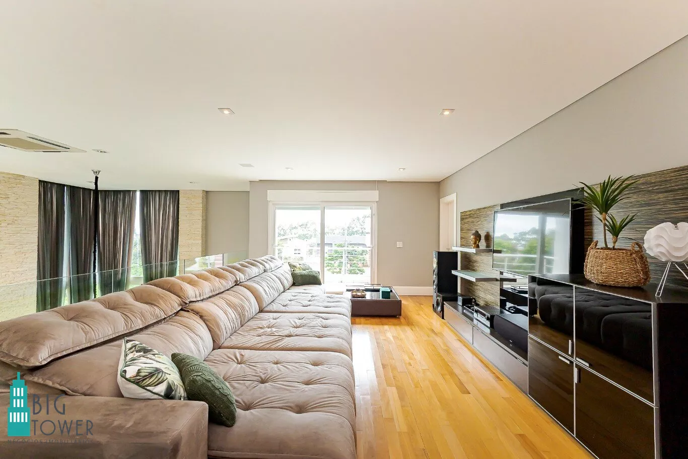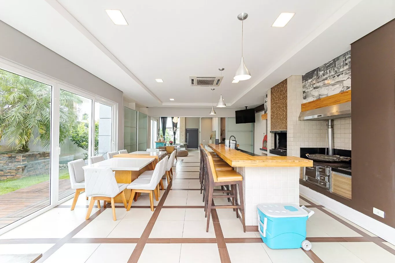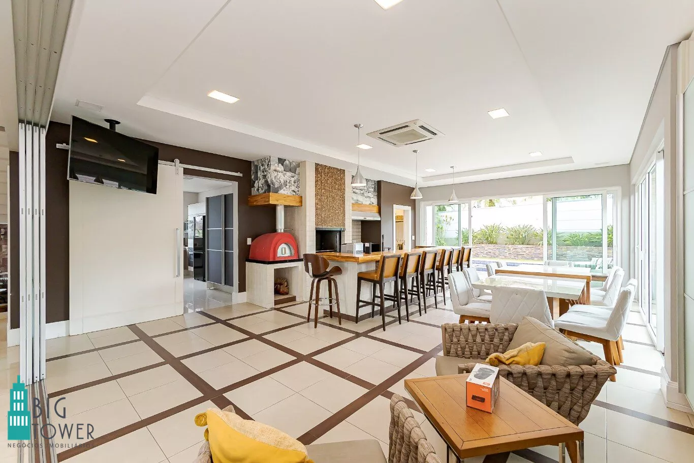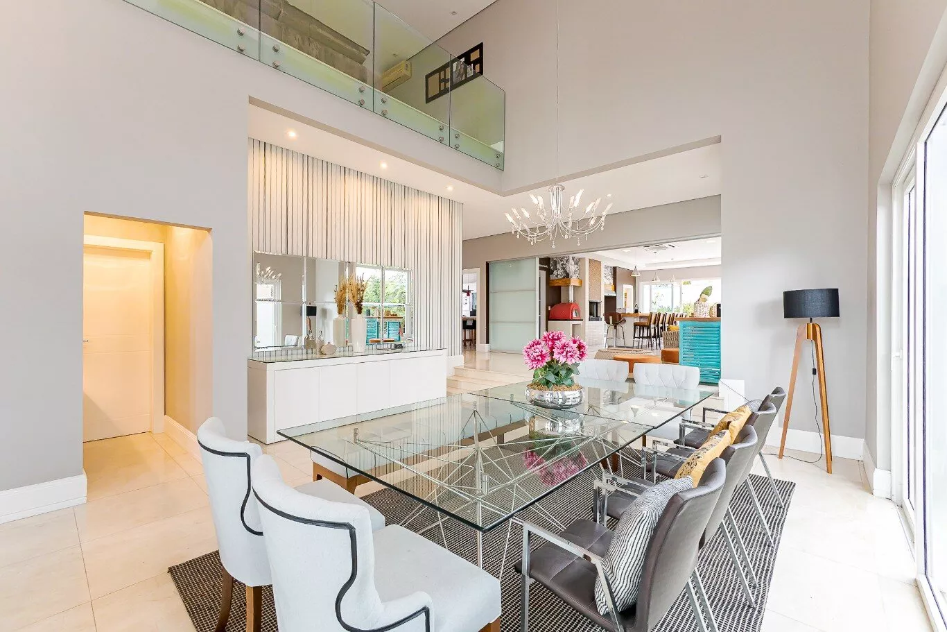 - Sala de estar e jantar com pé direito alto de 7 metros e lareira