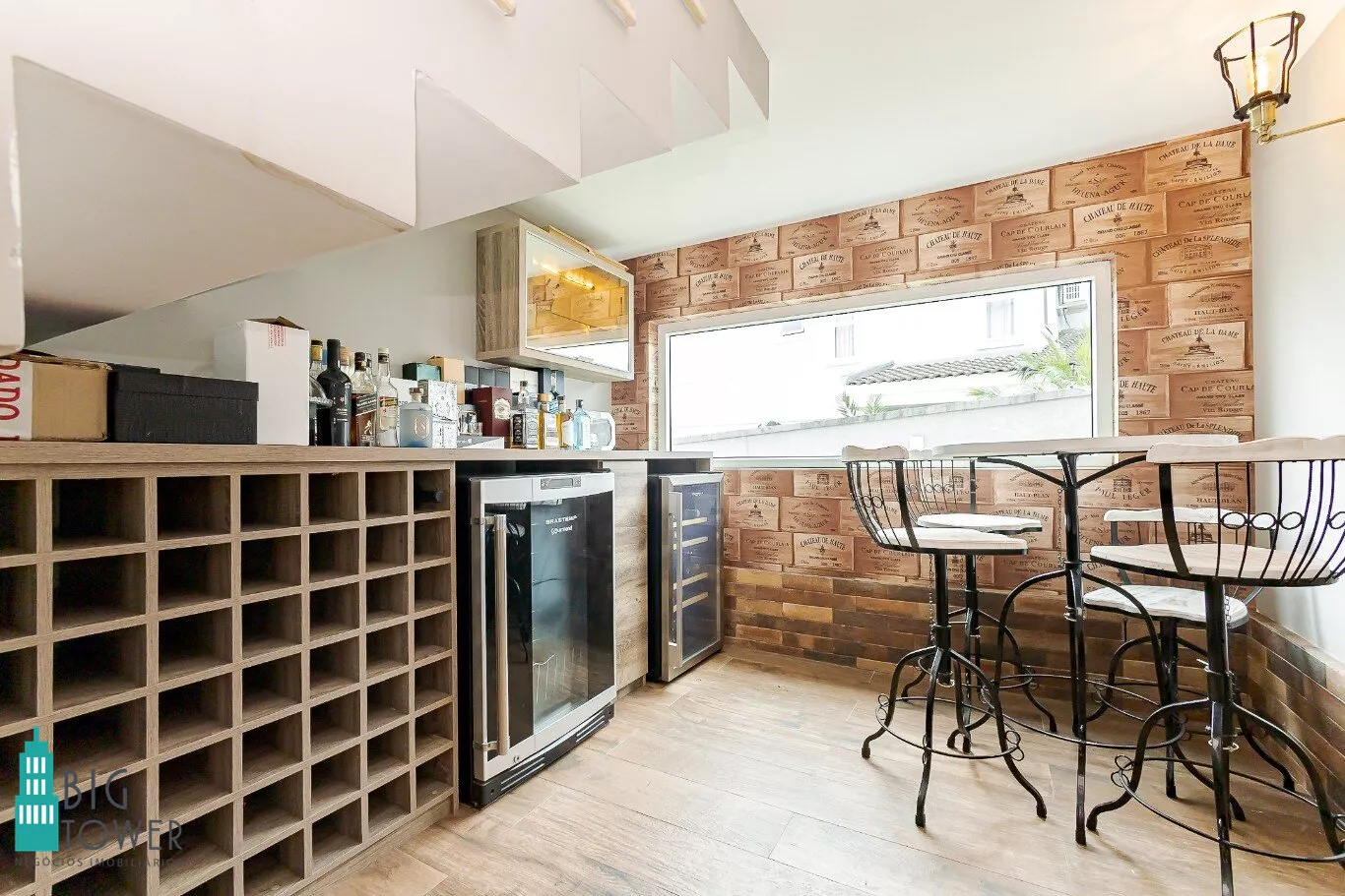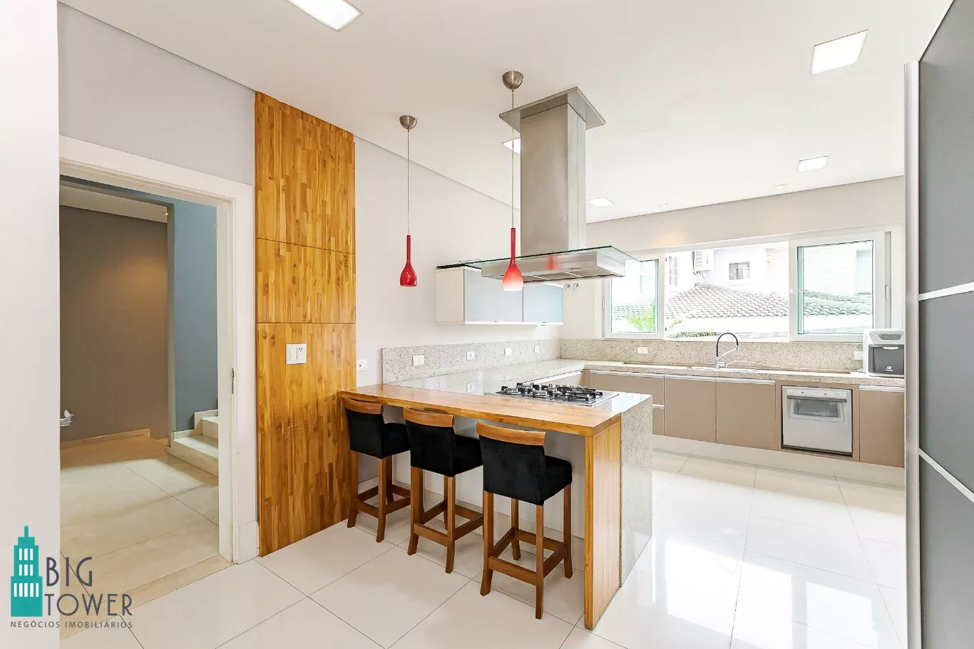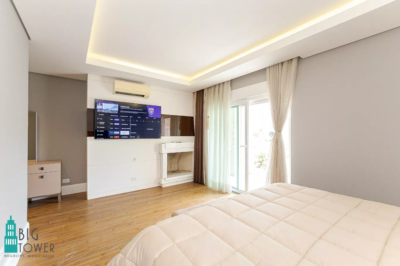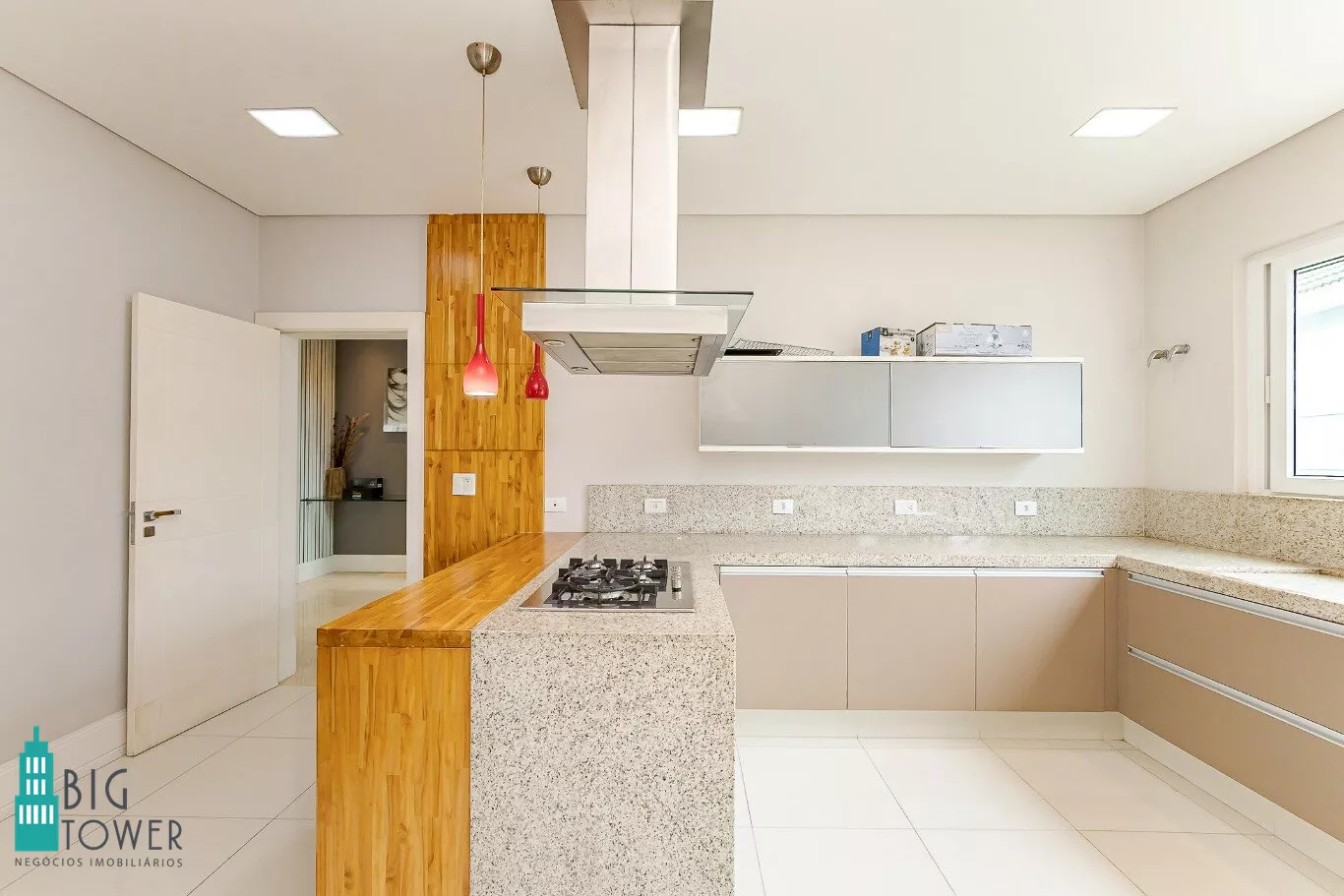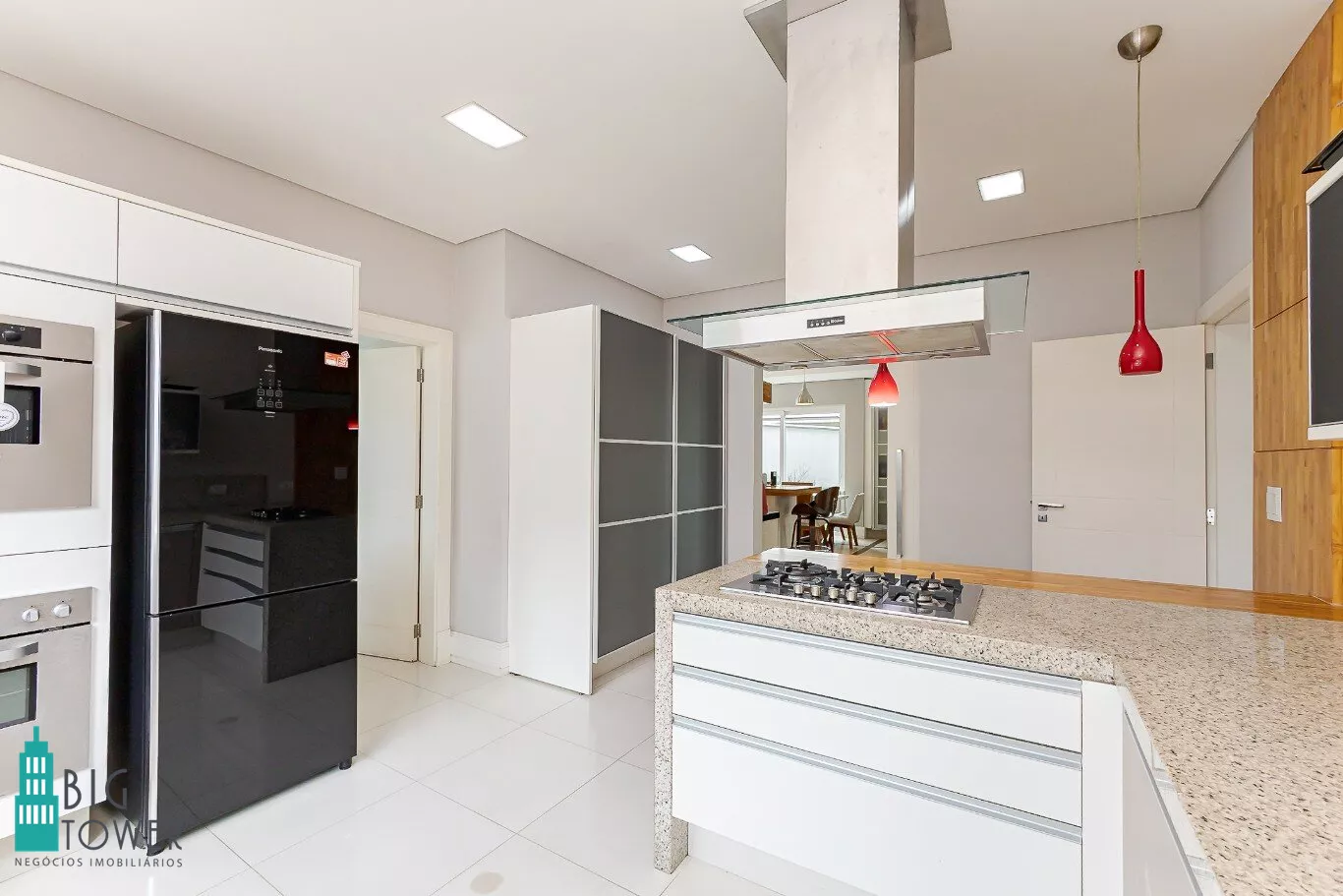 - Sala de estar e jantar com pé direito alto de 7 metros e lareira