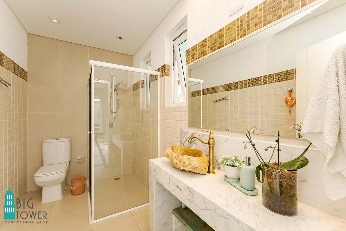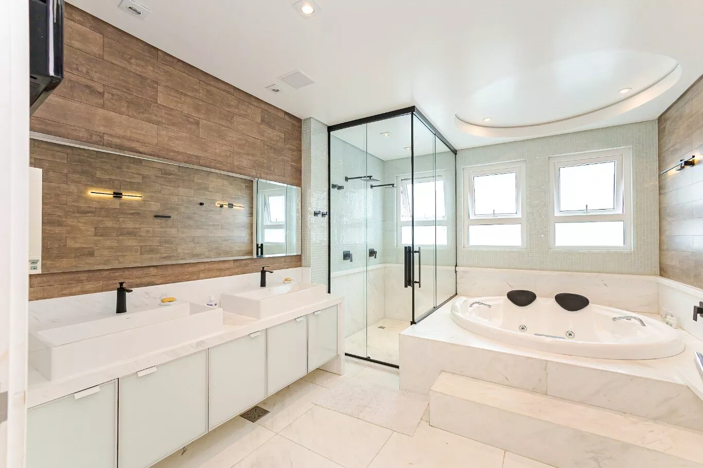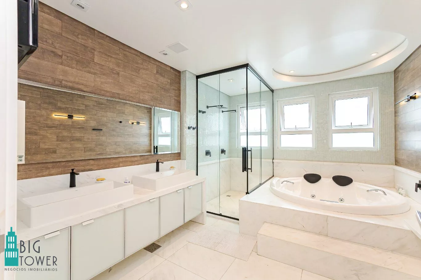 - 4 suítes espaçosas com banheiros em mármore grego branco Carrara