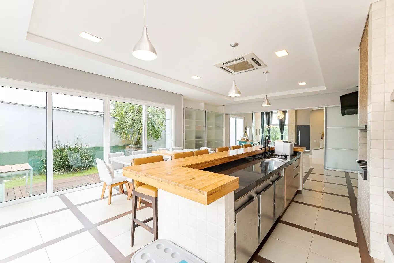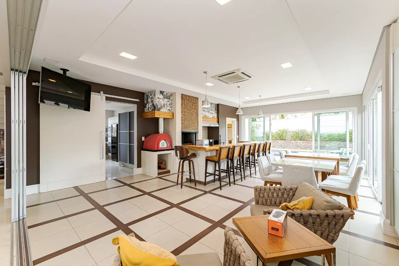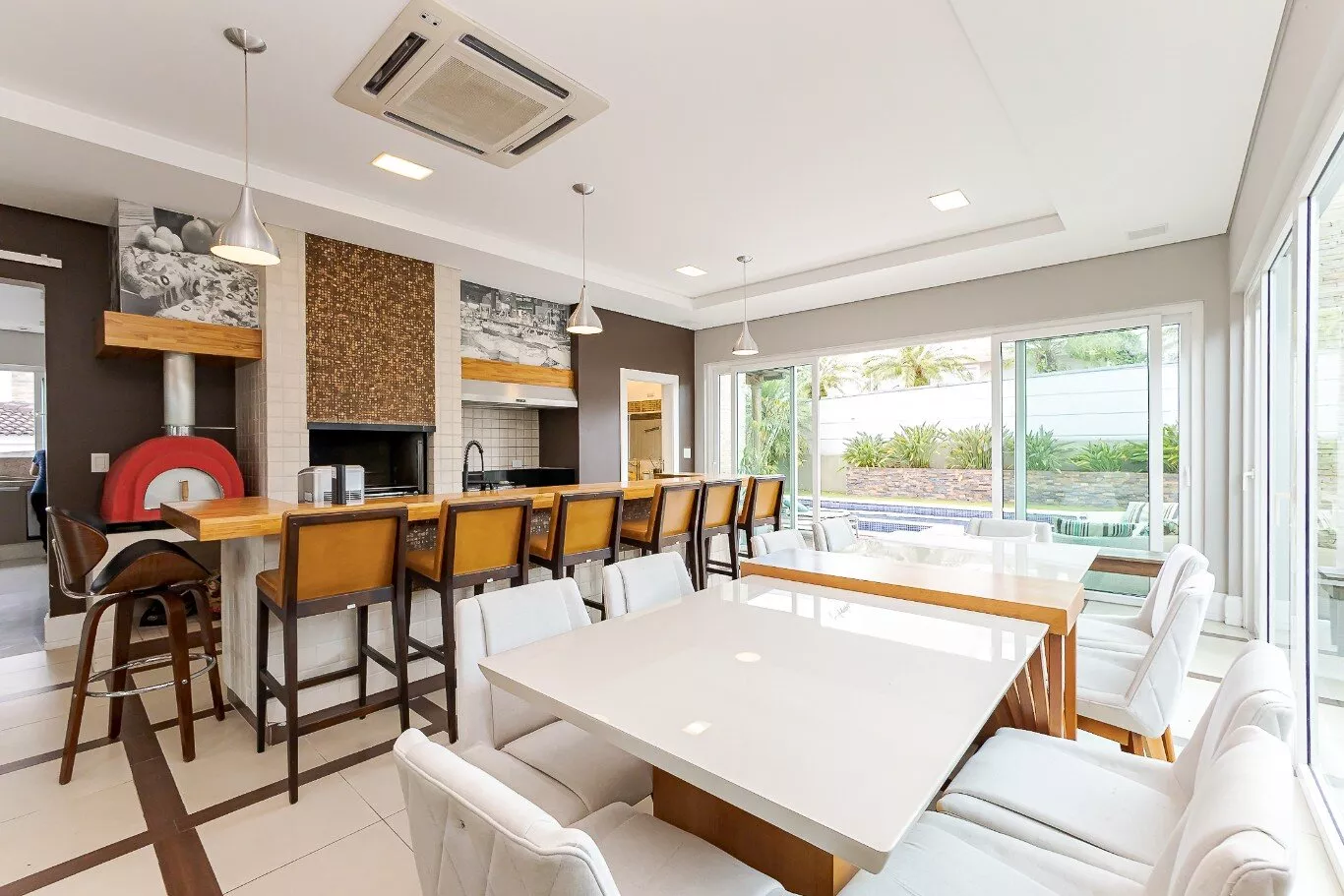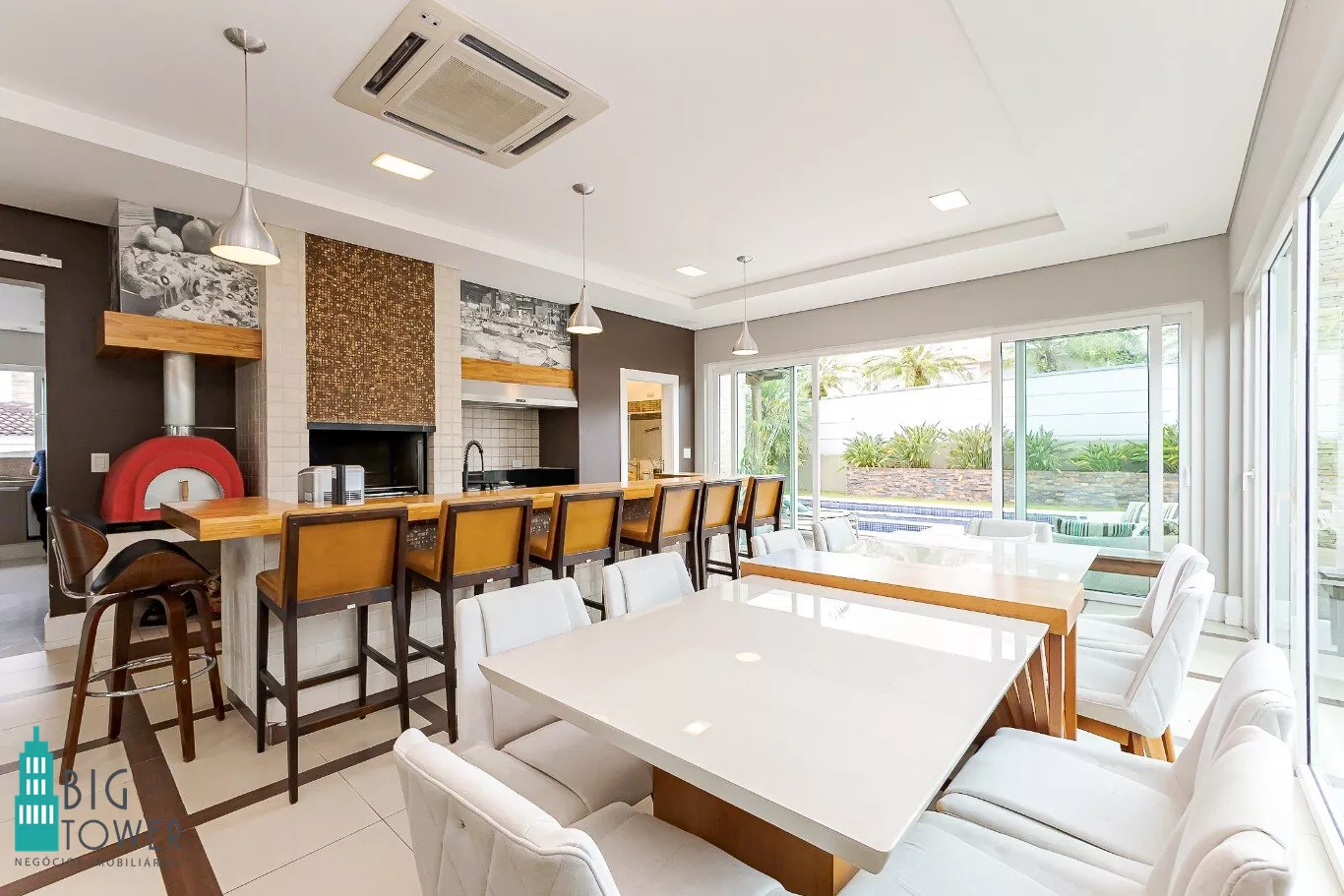 - Área gourmet completa com churrasqueira, forno para pizza e fogão a lenha